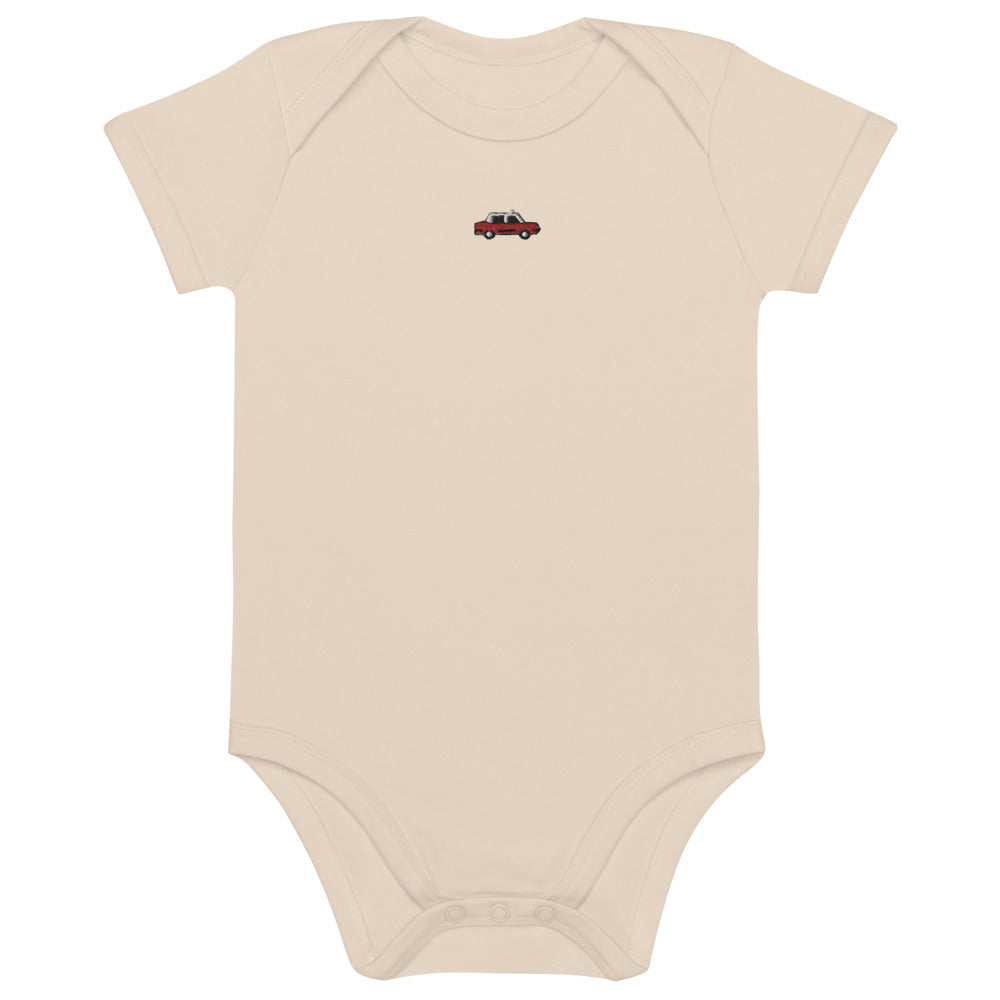 Itsy Bitsy Red Taxi | Organic cotton baby bodysuit